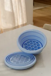 De CryoSplash gezichtsbowl is een innovatieve alles-in-één oplossing die een silicone ijsblokjesvorm combineert met een stijlvolle, opvouwbare bowl.